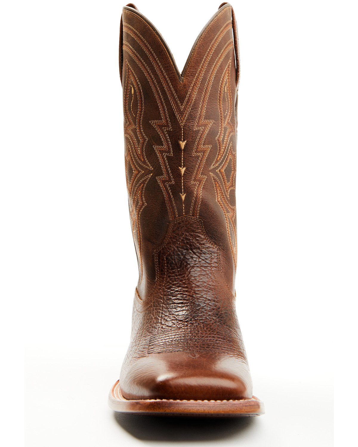 • Solid brown design with western stitching