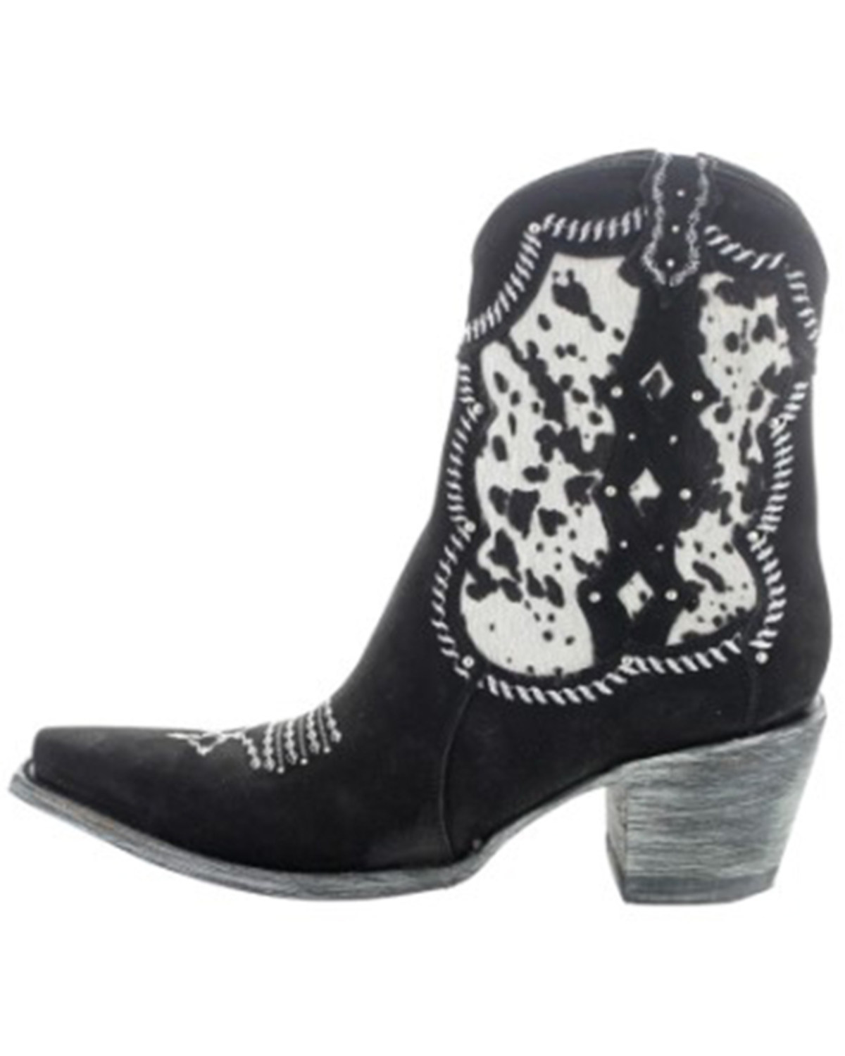 Eye-Catching Accents: The solid black leather is tastefully contrasted by hair-on accents and studded detailing, offering a modern twist on traditional Western aesthetics. This unique combination makes these boots a standout piece for any outfit, from jeans to dresses.
