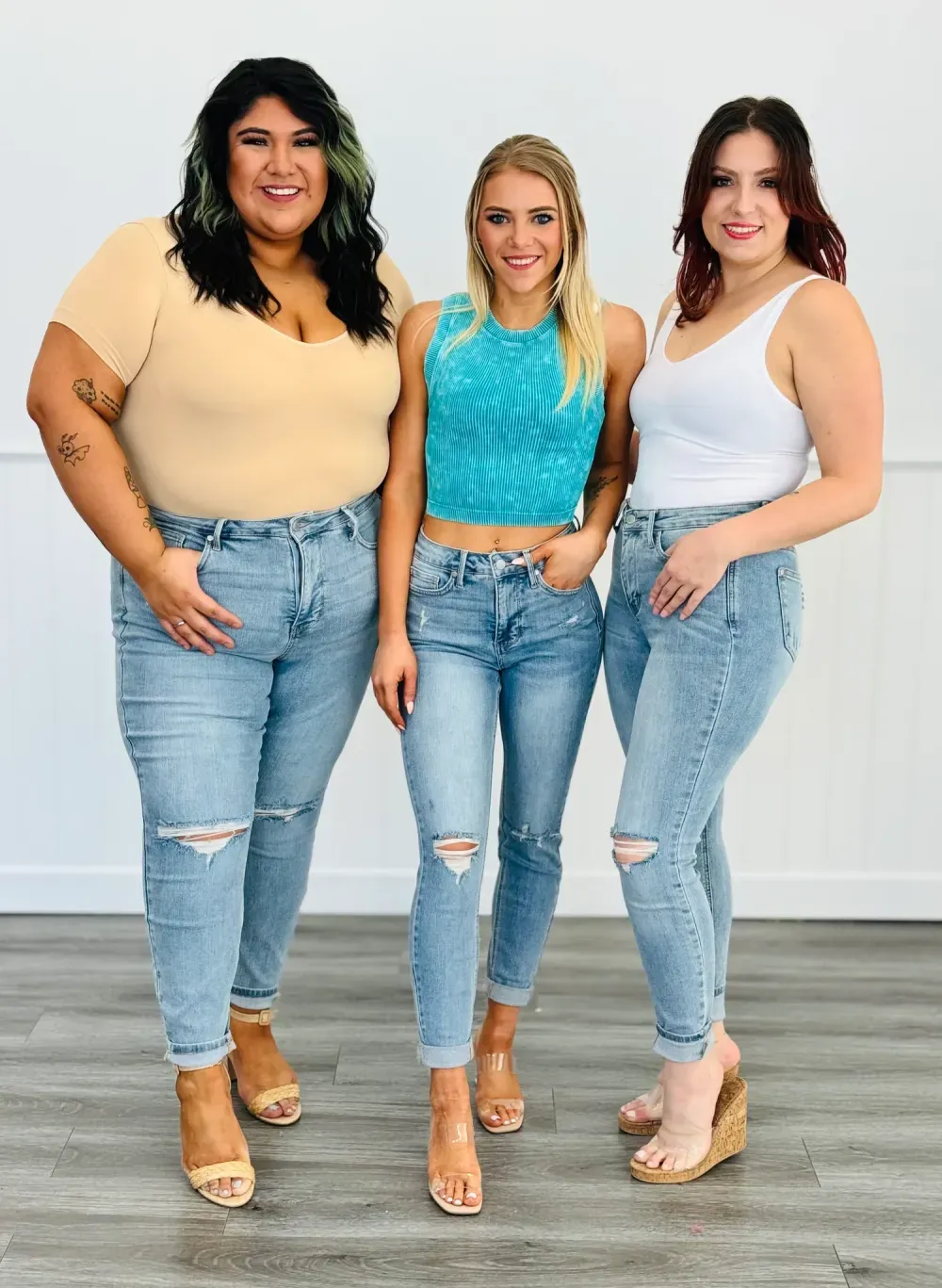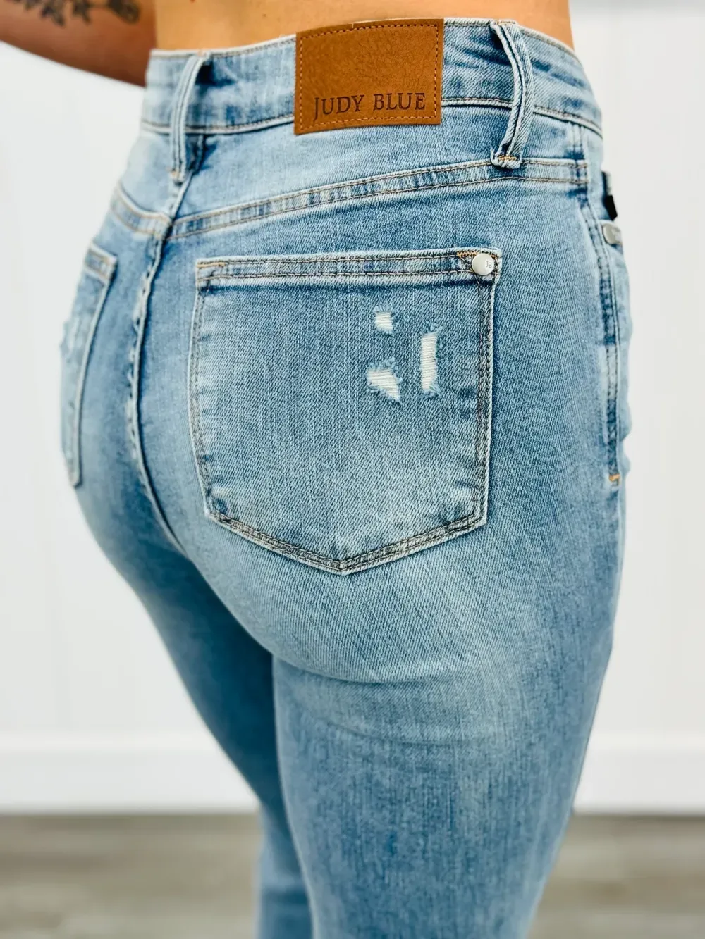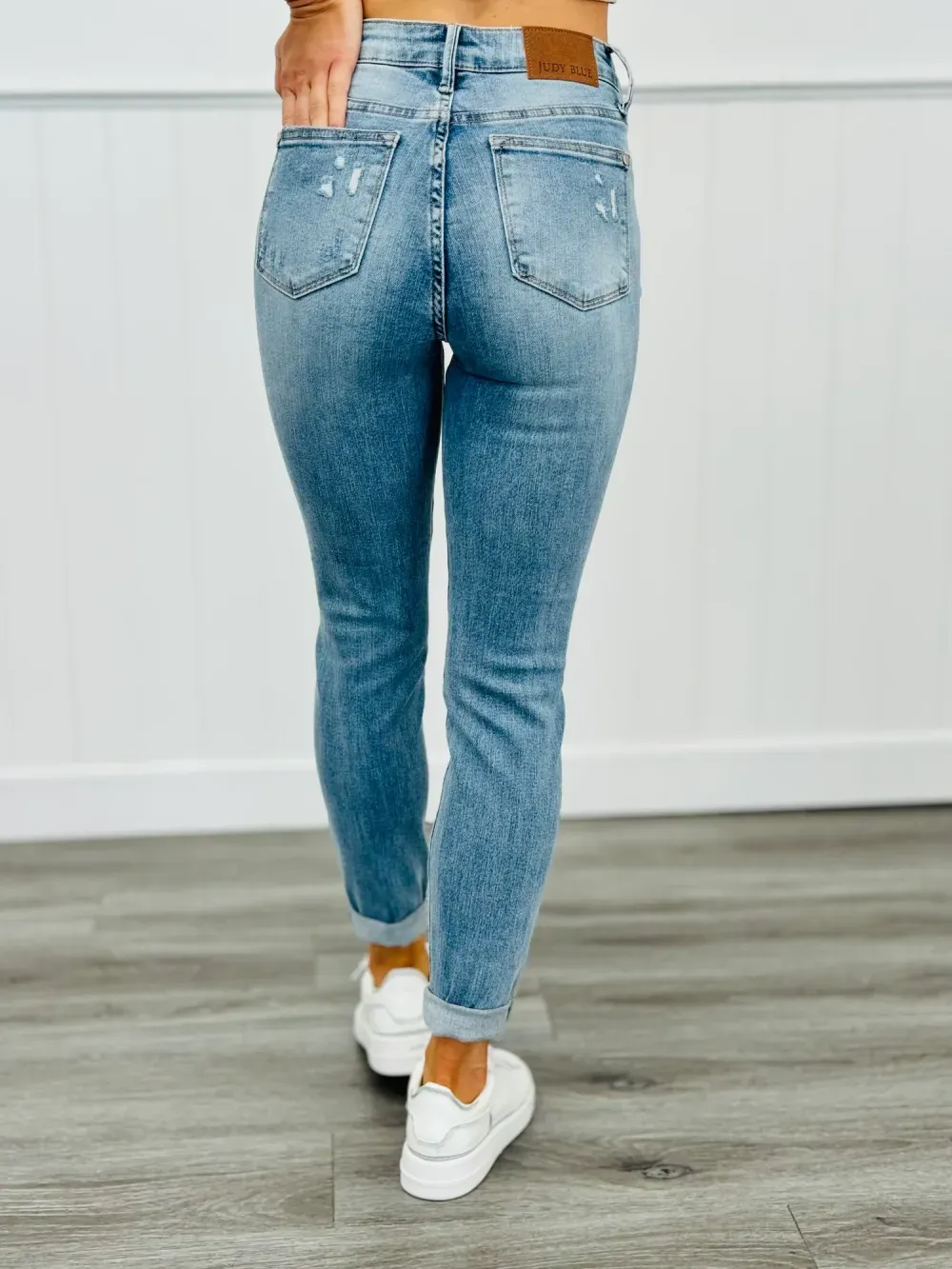 Get ready to slay all day with the All In Mid-Rise Skinny Jeans. With tummy control to give you a smooth silhouette and a mid rise for a flattering fit, these jeans will make you feel confident and comfortable. The distressed design adds a touch of edginess to any outfit. Available in regular and plus sizes.