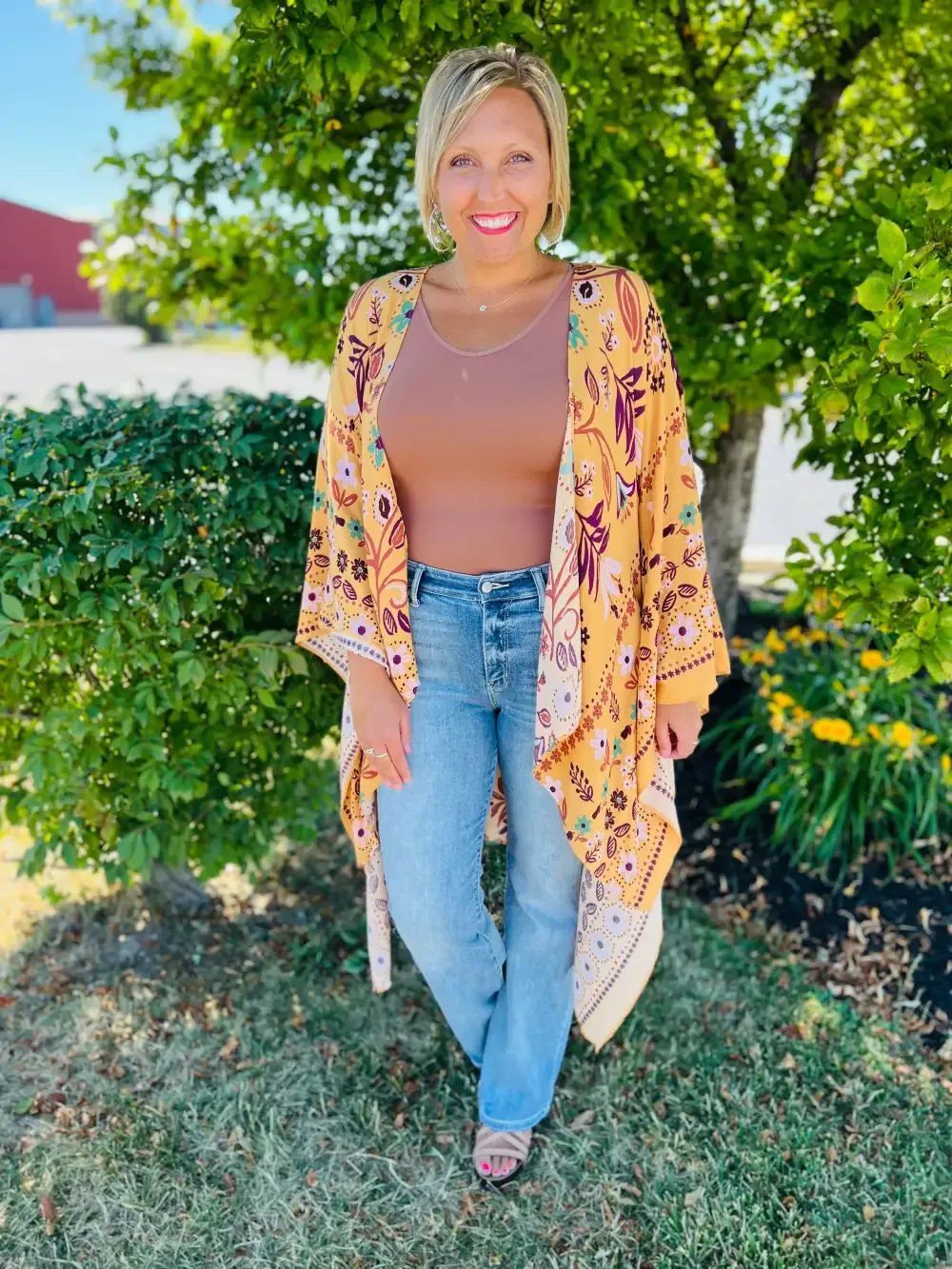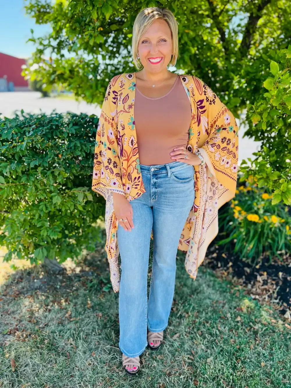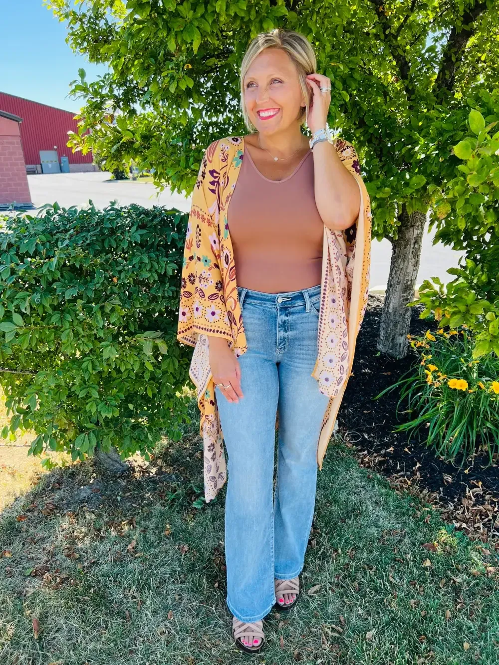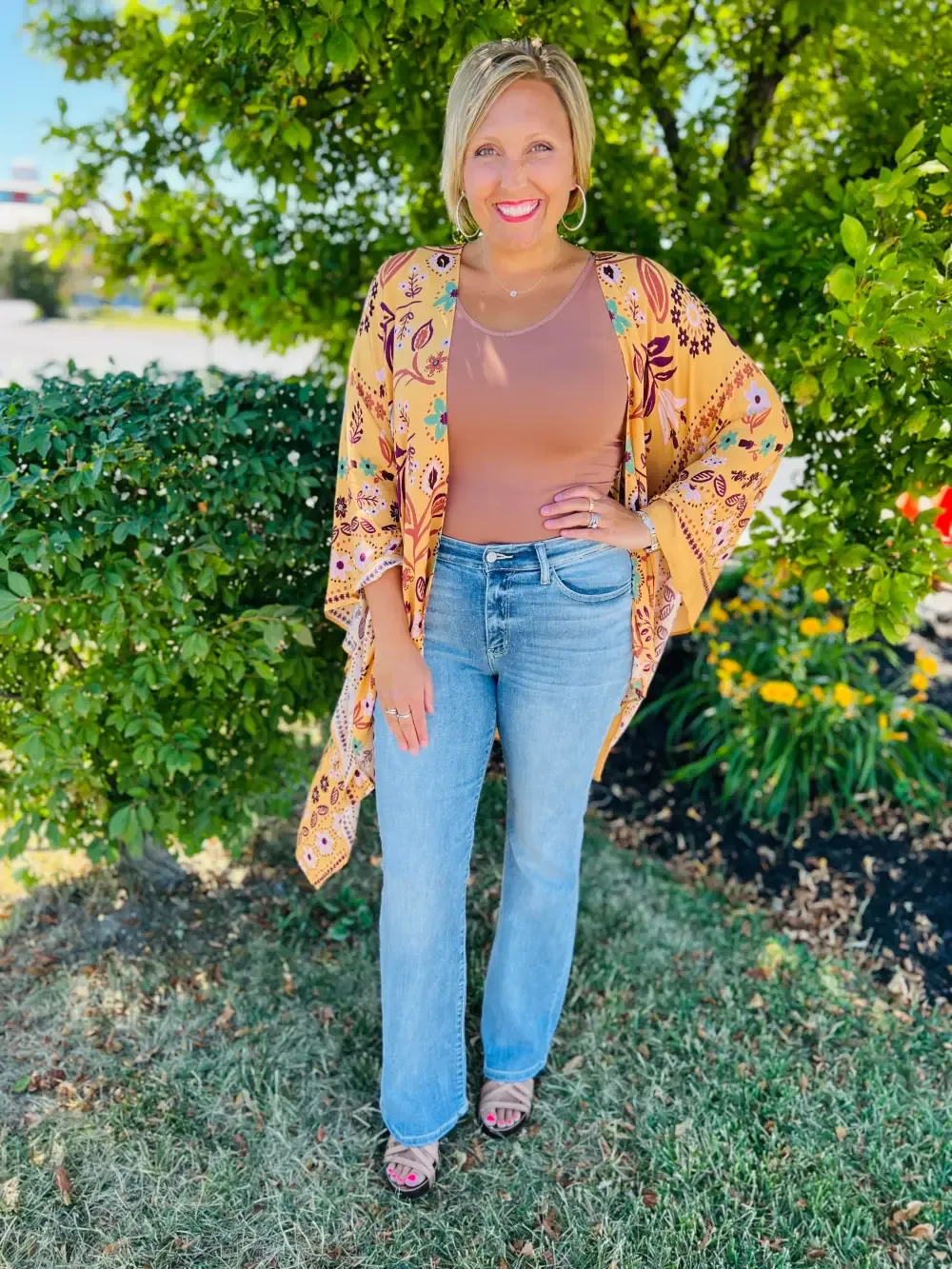 Ashley is wearing these jeans with the Make The Difference Kimono in Mustard.