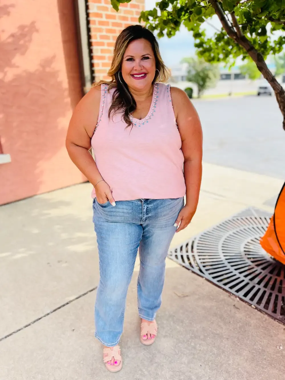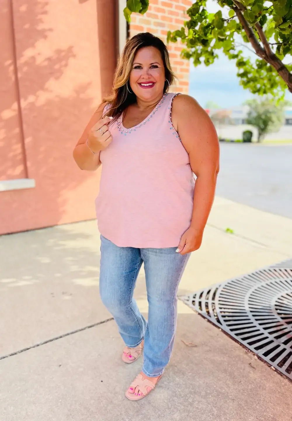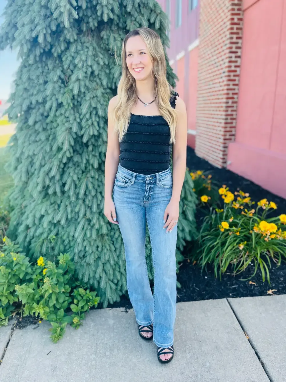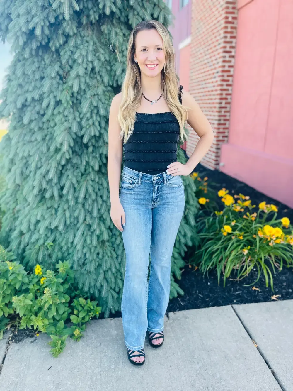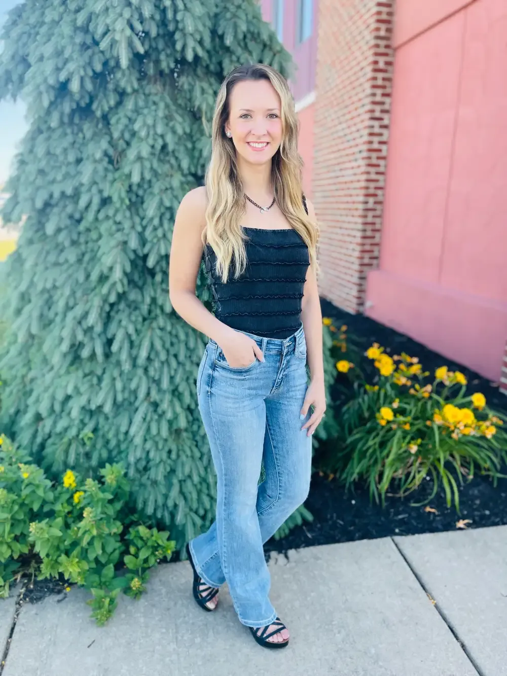 Carly is wearing these jeans with the Remember My Smile Tank Top.