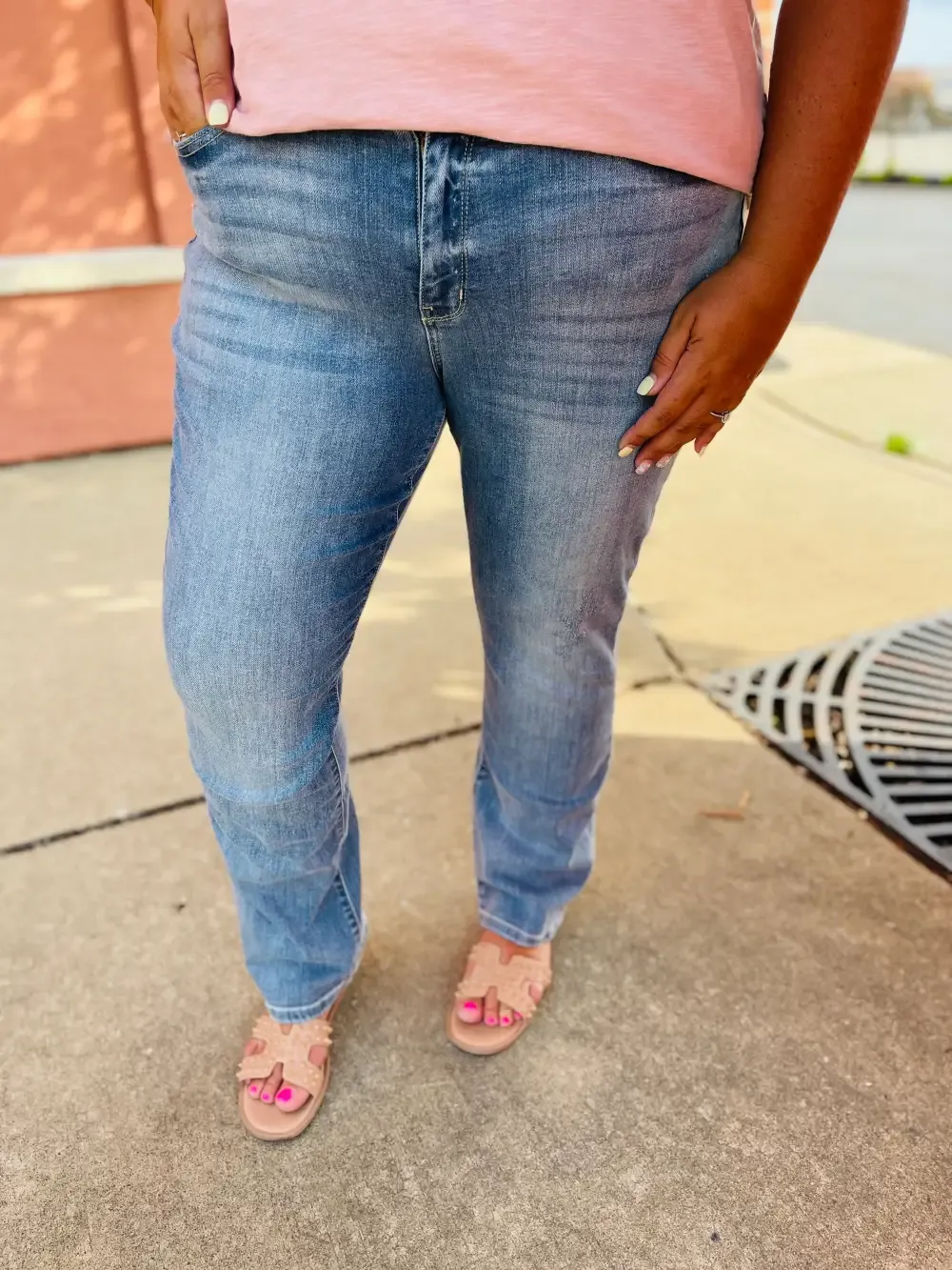 These jeans can easily be dressed up or down! Toss on your favorite graphic tee and booties or a bodysuit, kimono and wedges for an adorable look! These jeans are so versatile and can be worn with so many outfits!