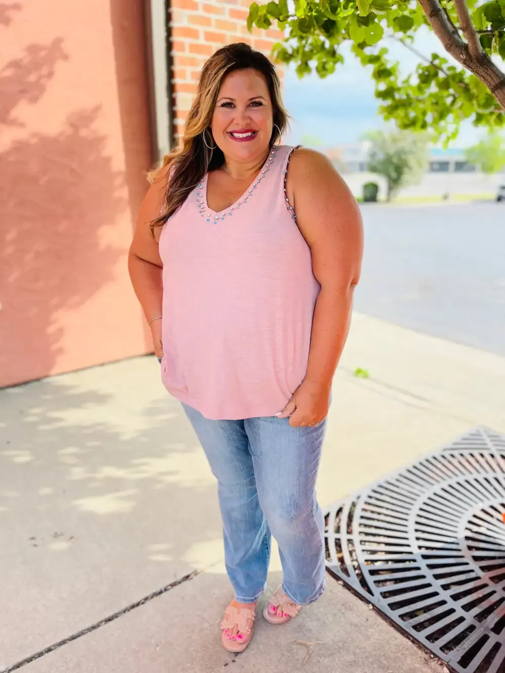 Callie is wearing these jeans with the Hard To Handle Tank Top.