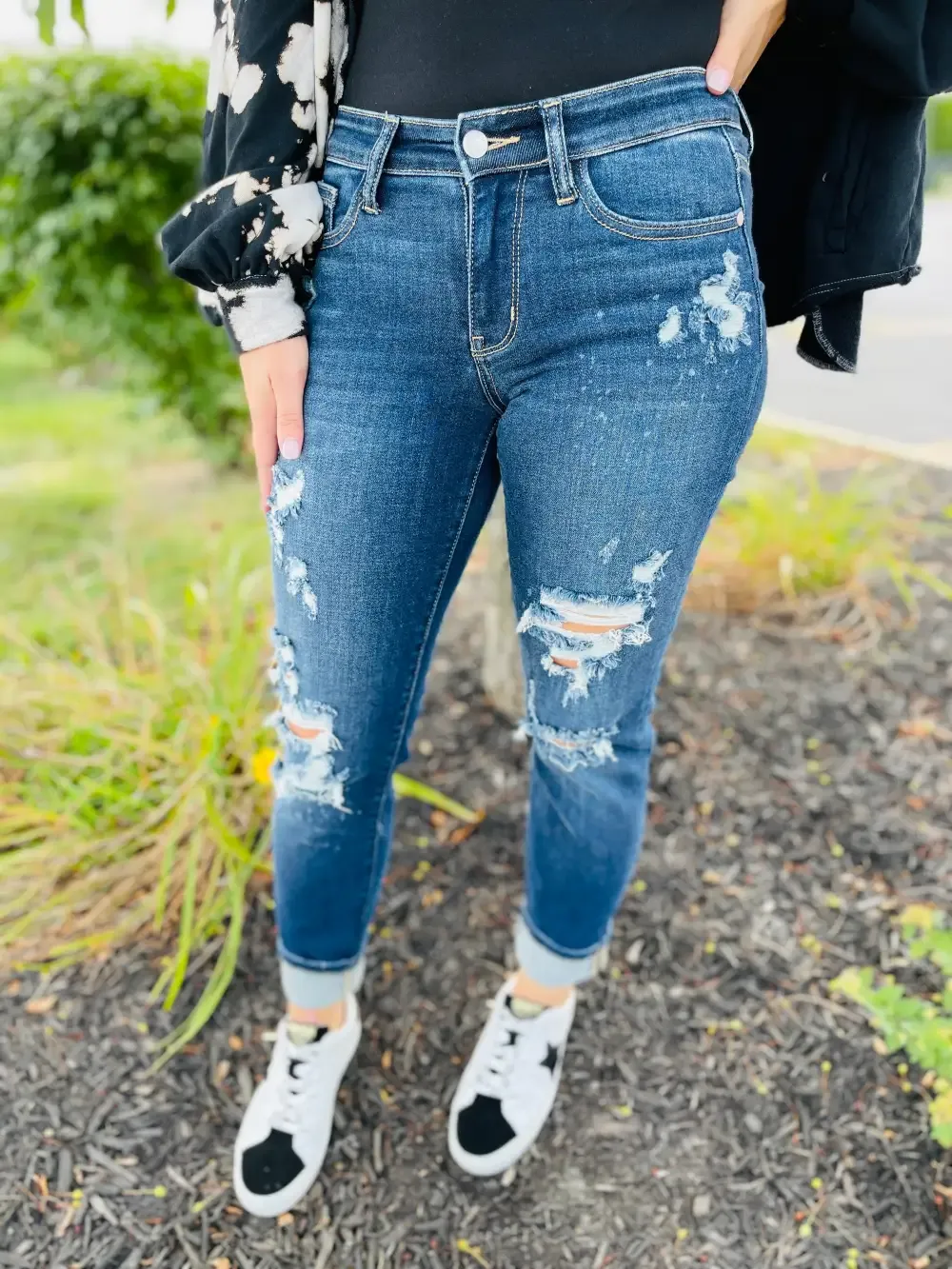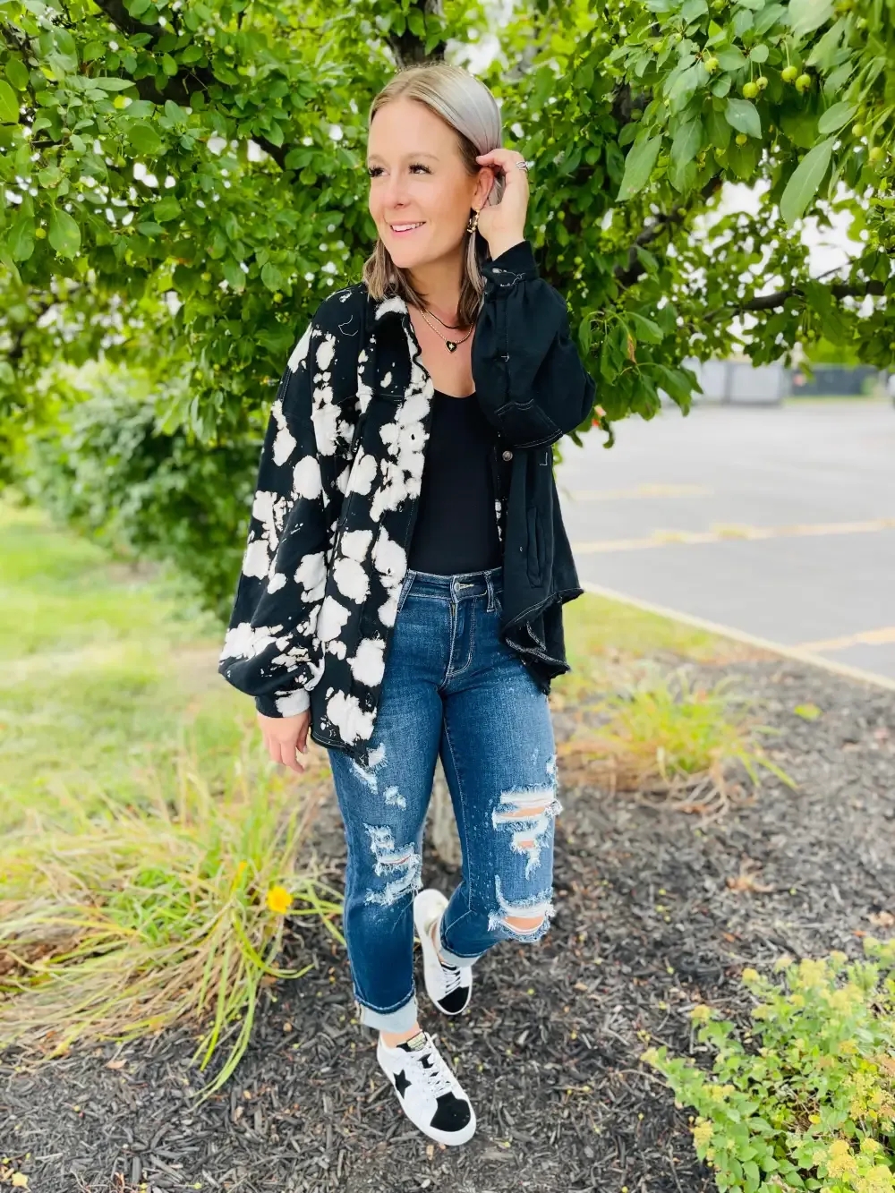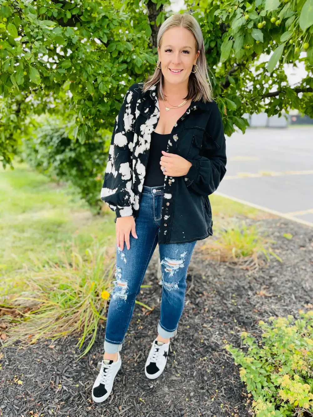 Alright, STOP! Collaborate and listen— you NEED these new Judy Blue bleach splatter boyfriend jeans!