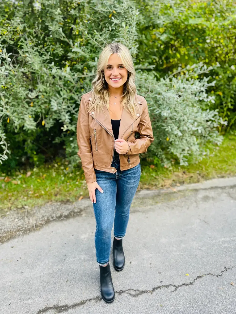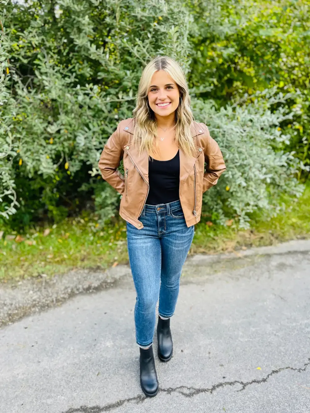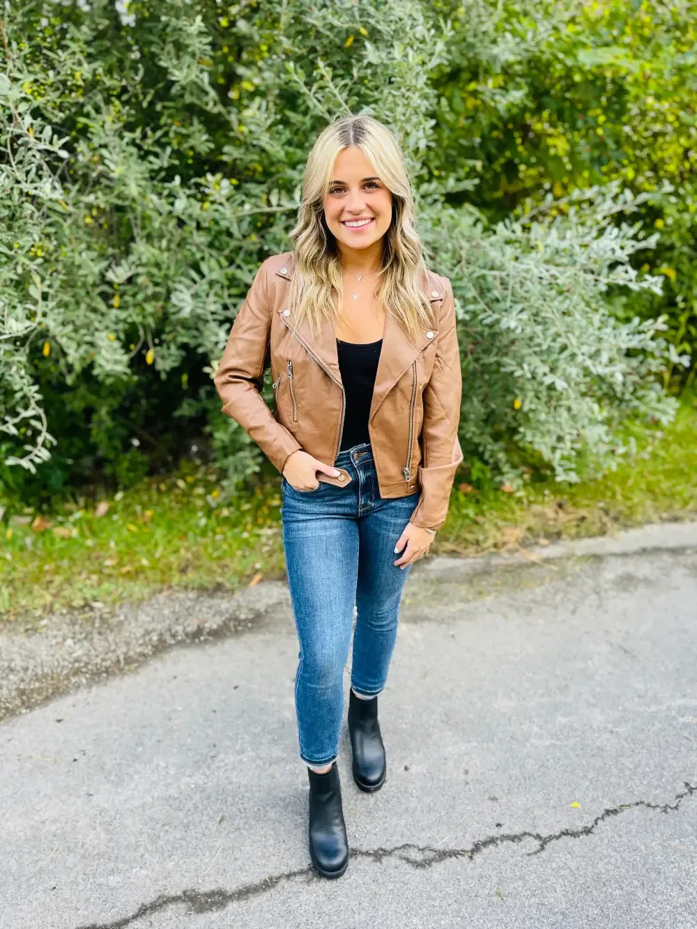 Olivia is wearing these jeans with the No Looking Back Jacket.