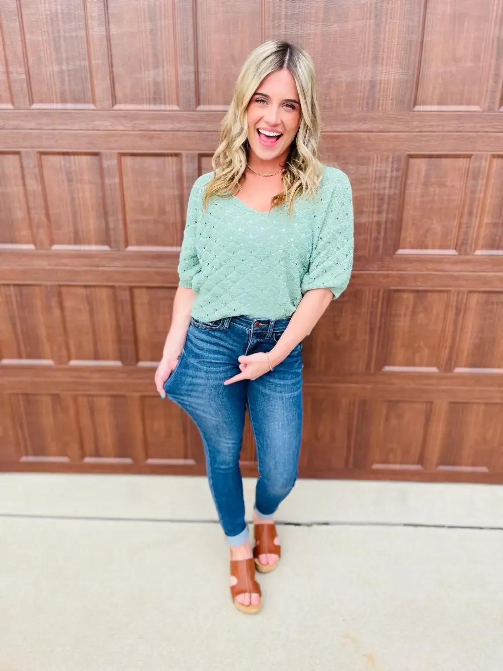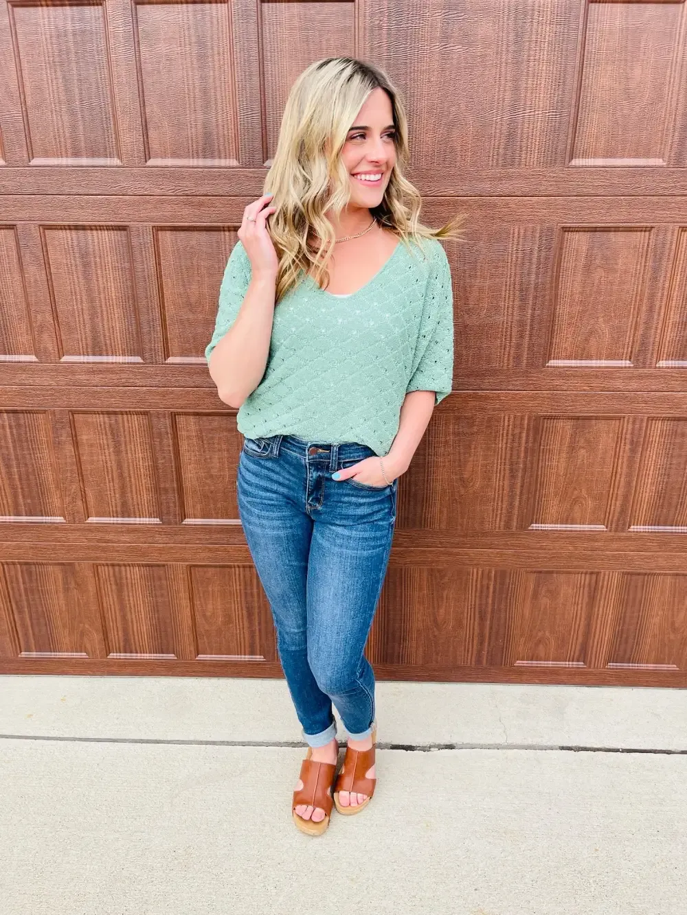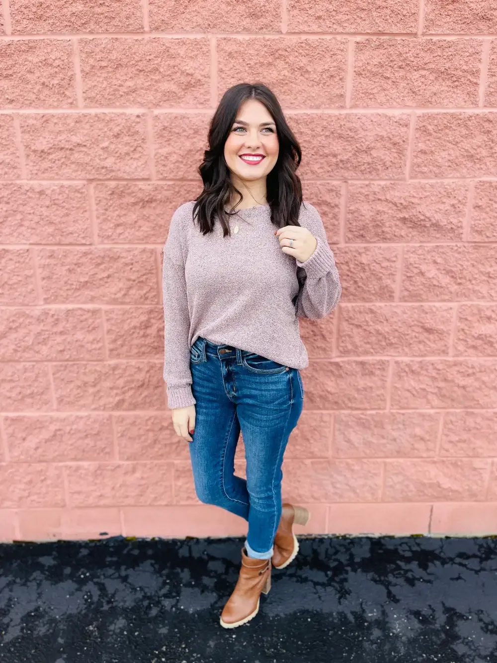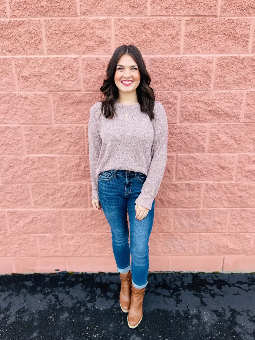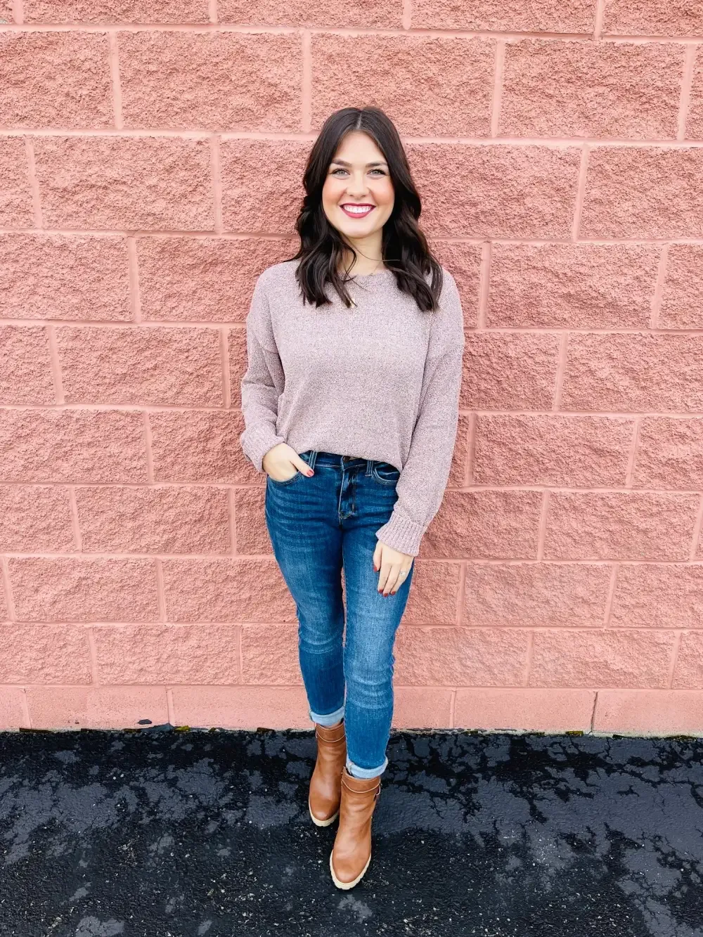 Jess is wearing these jeans with the Don’t Worry About Me Sweater.