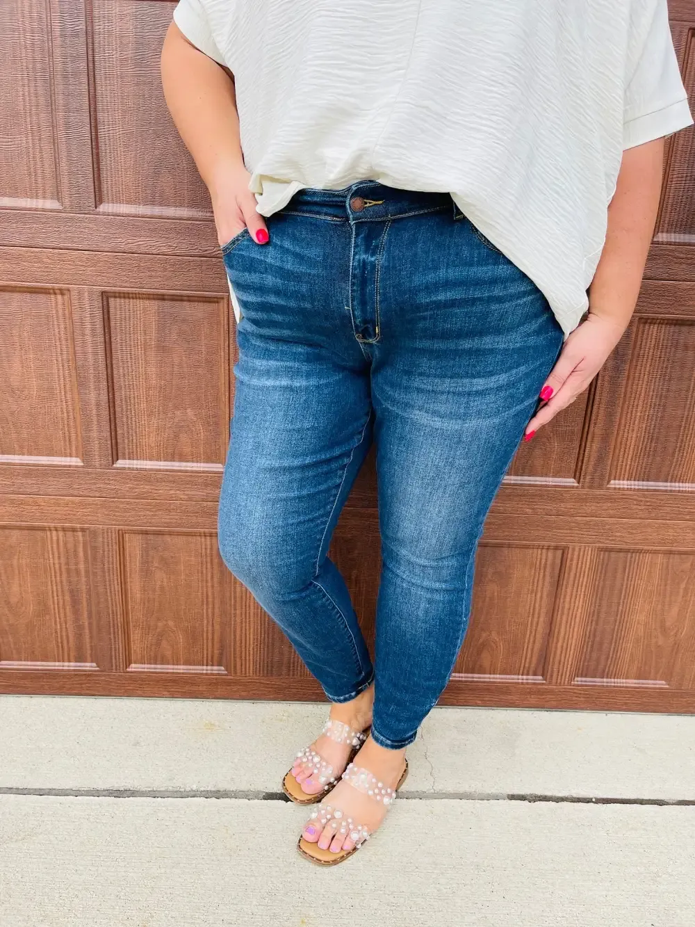 The best part? These are a true mid rise jean, babes! Most Judy Blues have a higher rise and we get so many messages and emails begging for mid rise Judy Blue jeans and they are finally here— and nondistressed is the icing on the cake! Whoop!