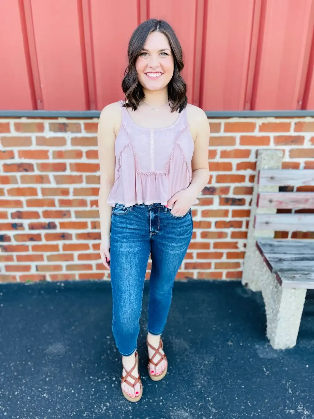 Morgan is wearing these jeans with the Lure Me In Detail Top.