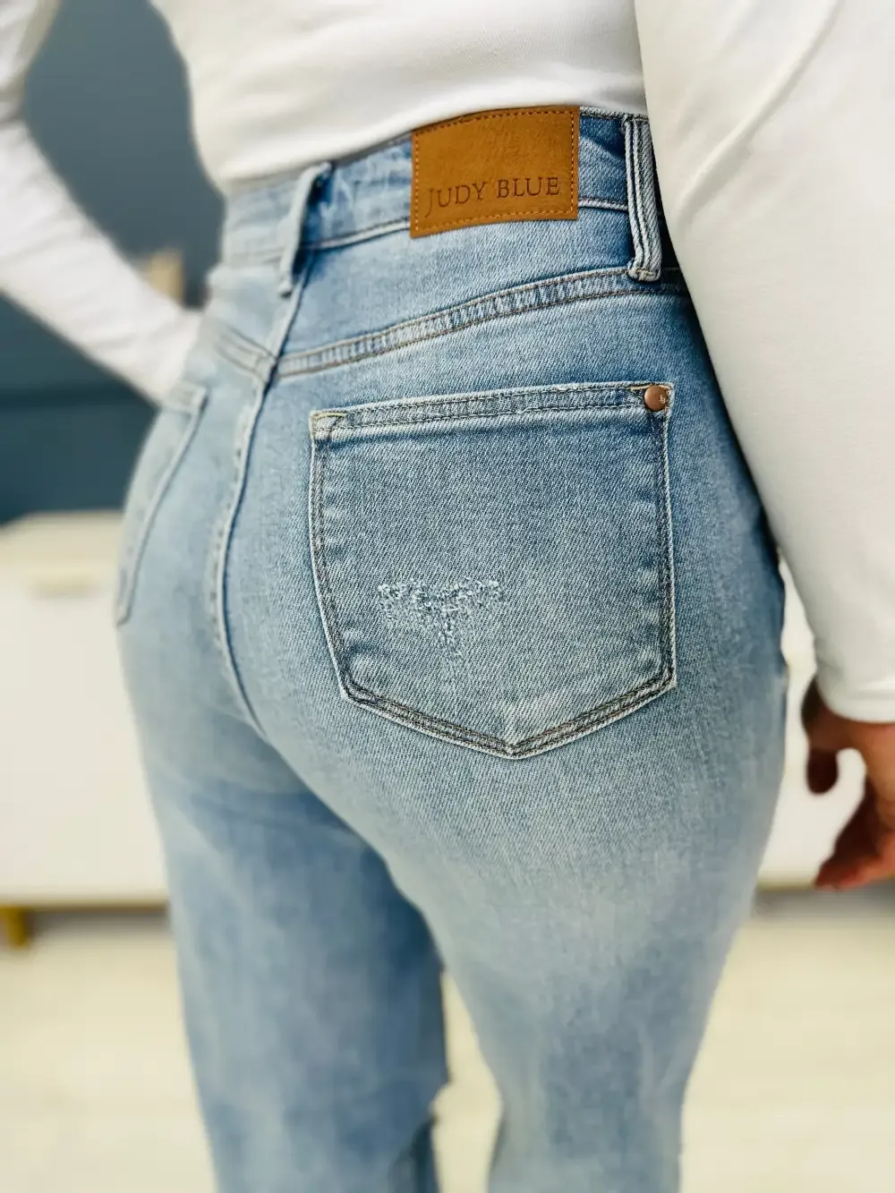 (2) HALF RIGID TECHNOLOGY + STRETCH- our hottest selling style of Judy Blue Jeans right now are the half rigid styles. These jeans are 100% cotton in the front to hold everything in but the back of the jeans has the Judy Blue STRETCH that you know and love, making them extra comfortable!