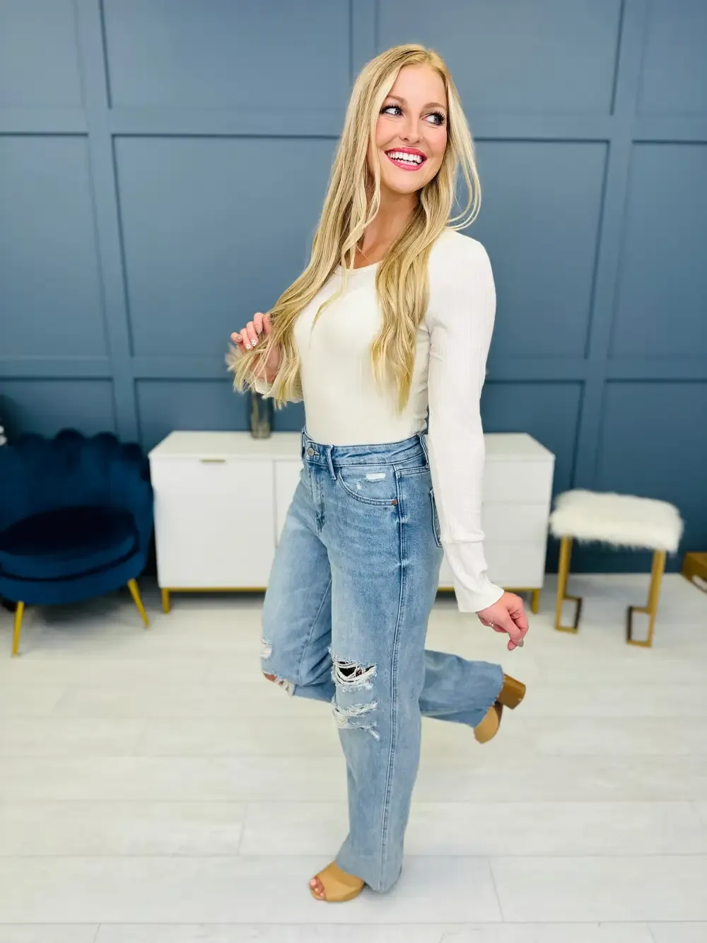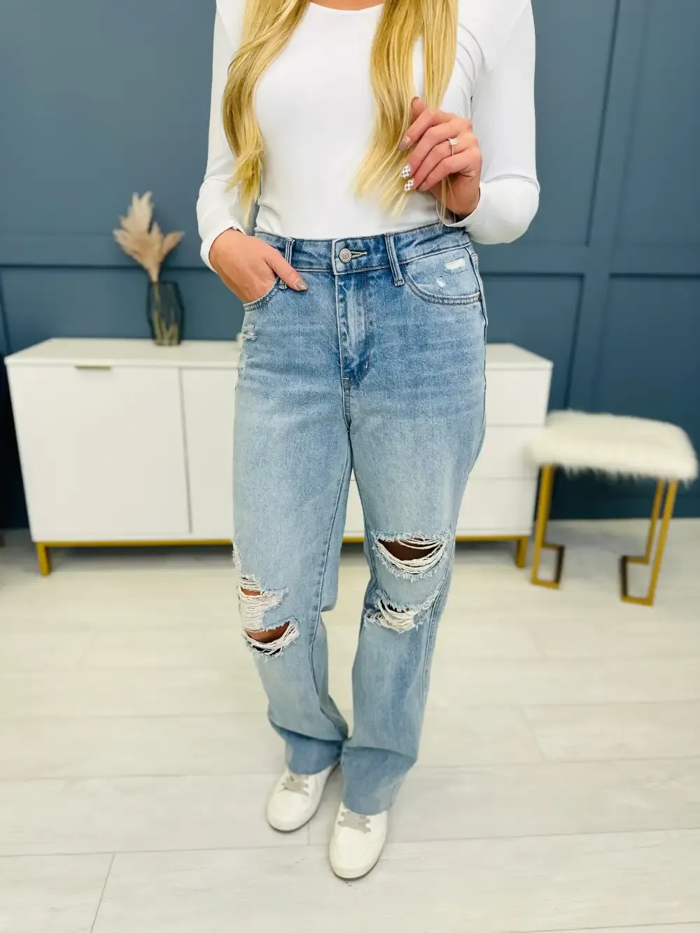 (1) THE 90s ARE BACK and we could not be more excited! These jeans are a straight leg style that is trending everywhere! Dress these up or down in every single season for trendy look!