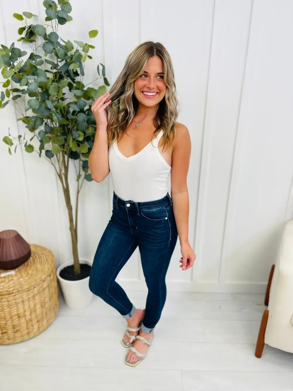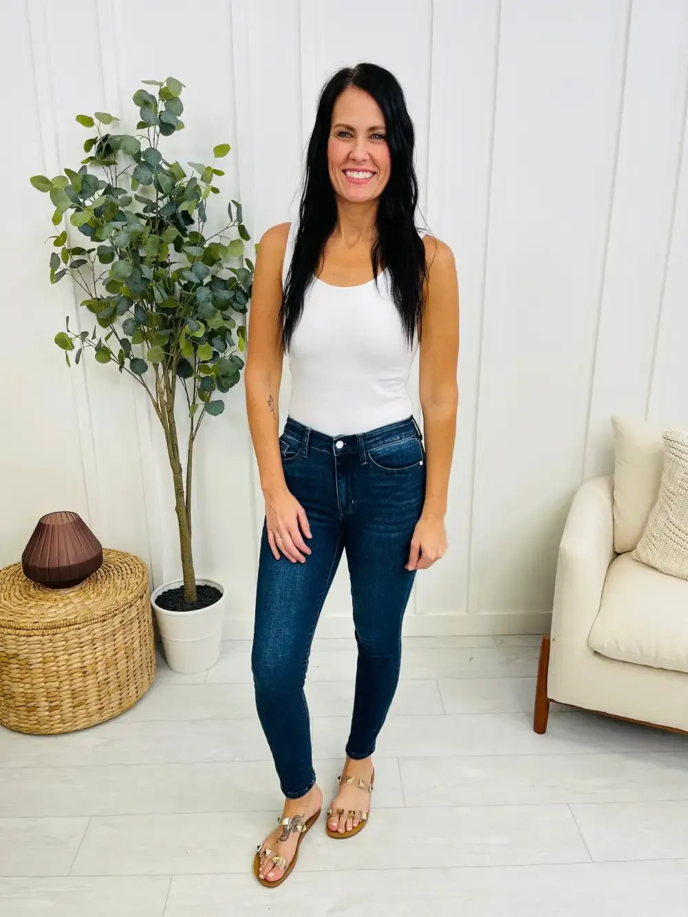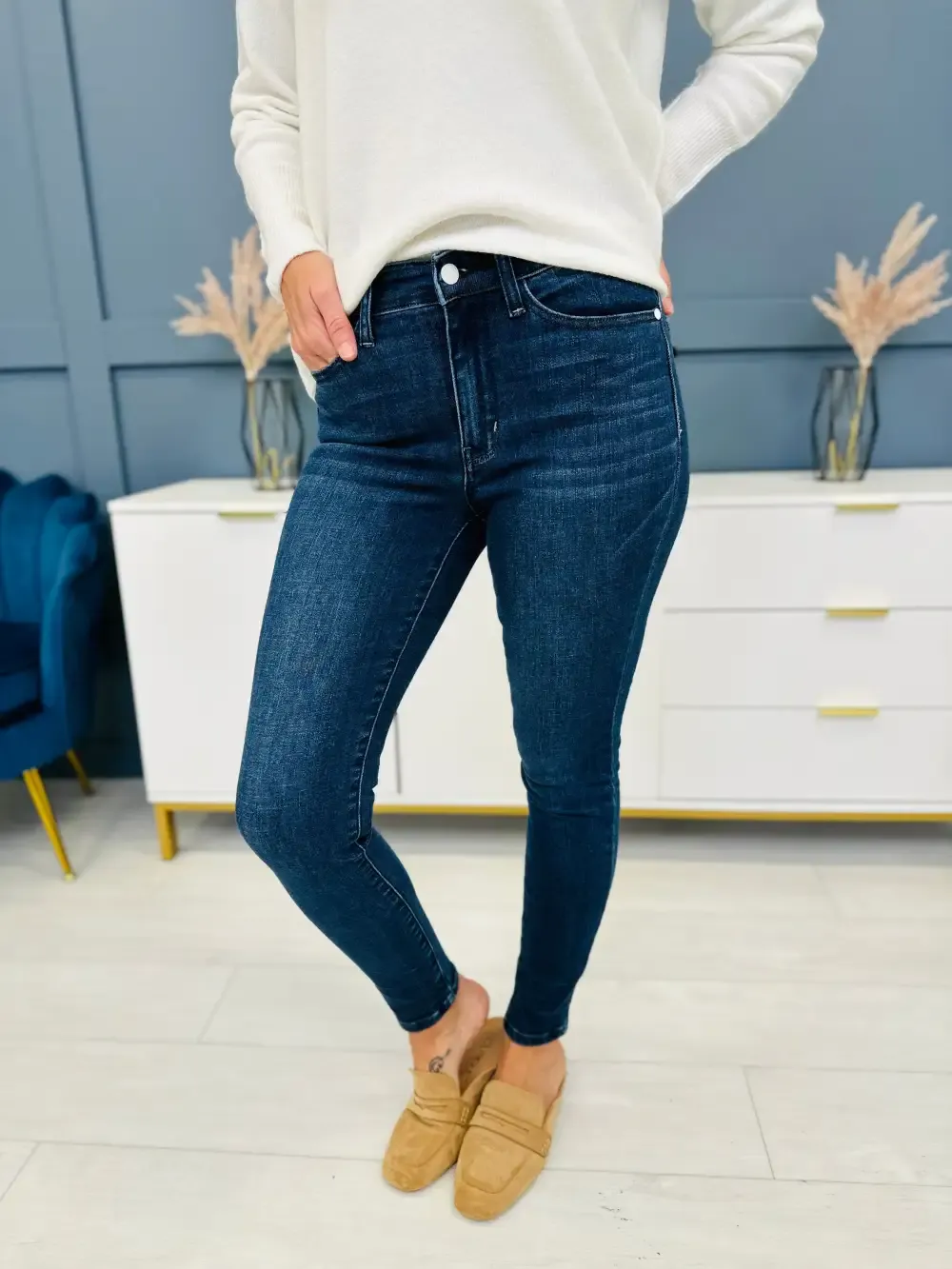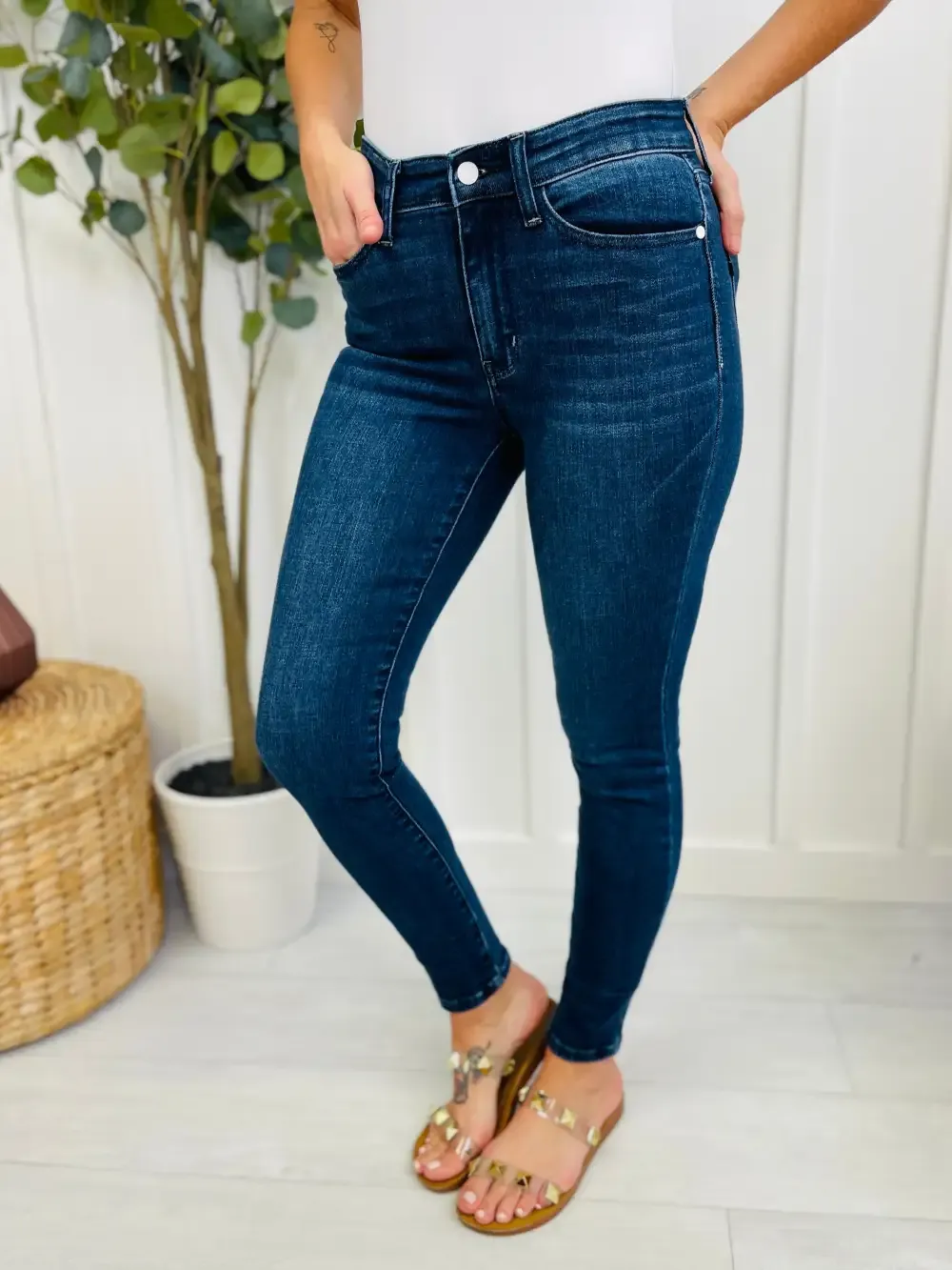 These Judy Blue Skinny jeans are one of the best pairs of jeans we have ever released. This dark wash pair is completely non distressed. It is a dark wash that can be worn form work to weekend to date night to everywhere in between.