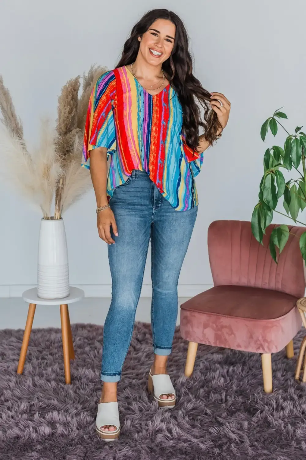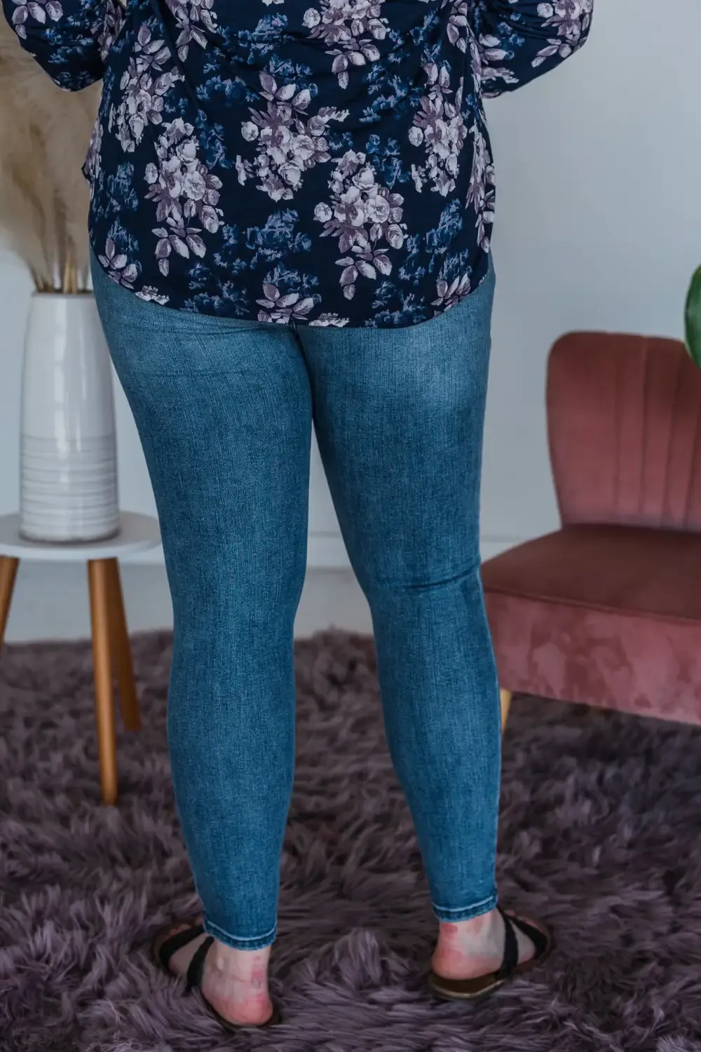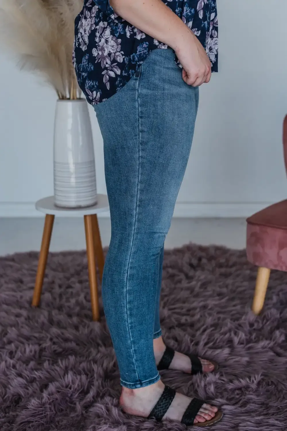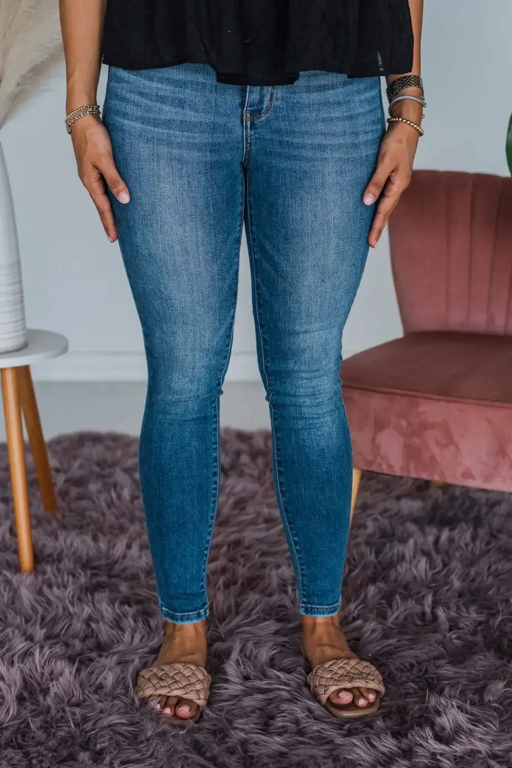 We suggest sticking with your true Judy Blue size shown above for the perfect fit.