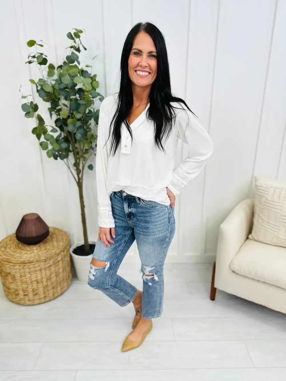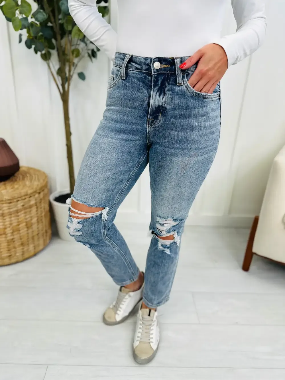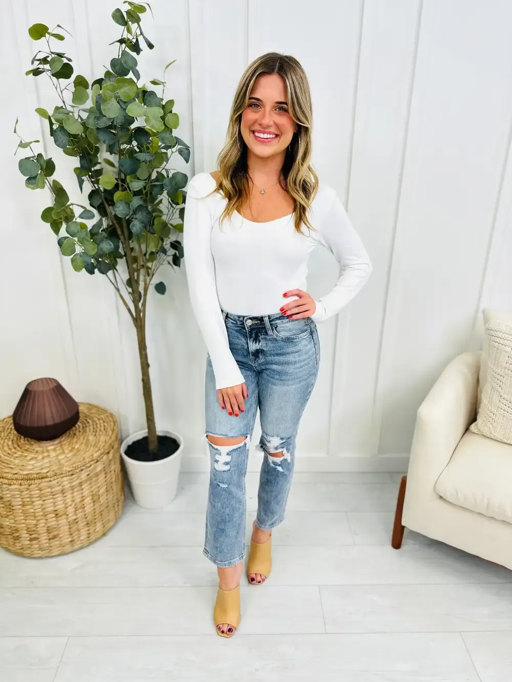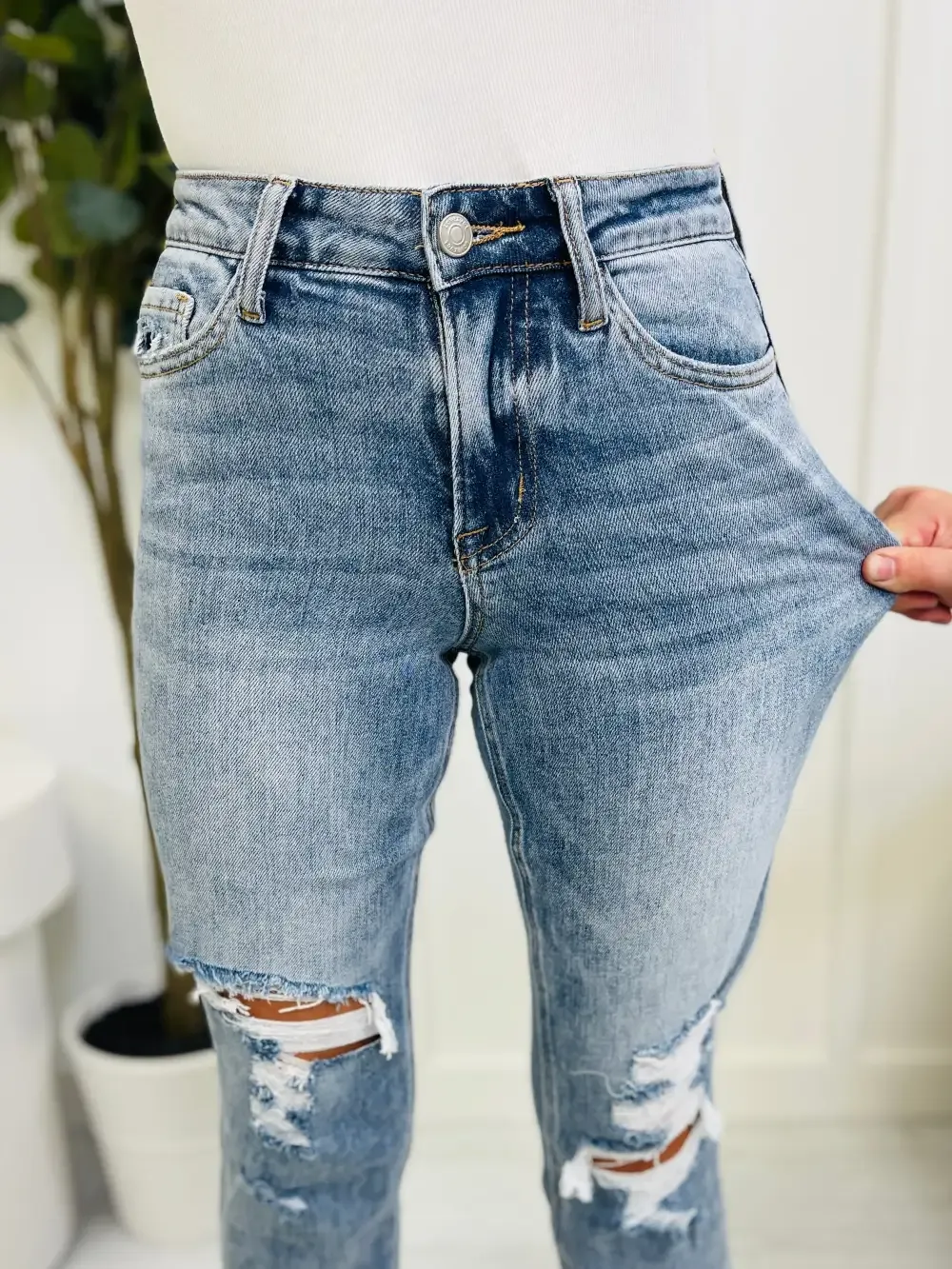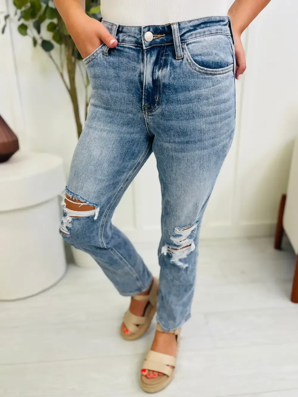 These cropped jeans are SO trendy! They feature a cropped inseam and distressing that we cannot get enough of!