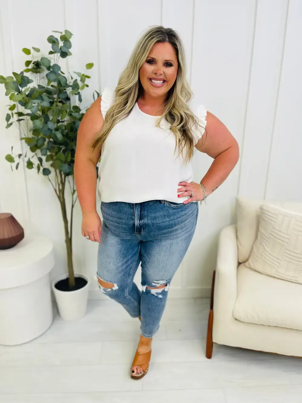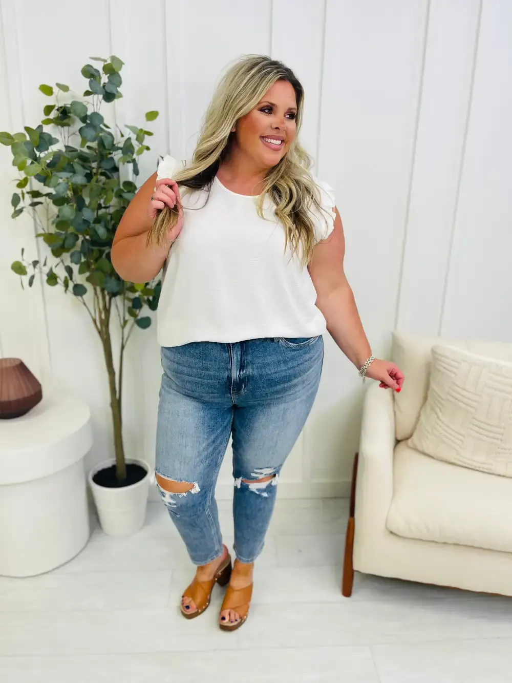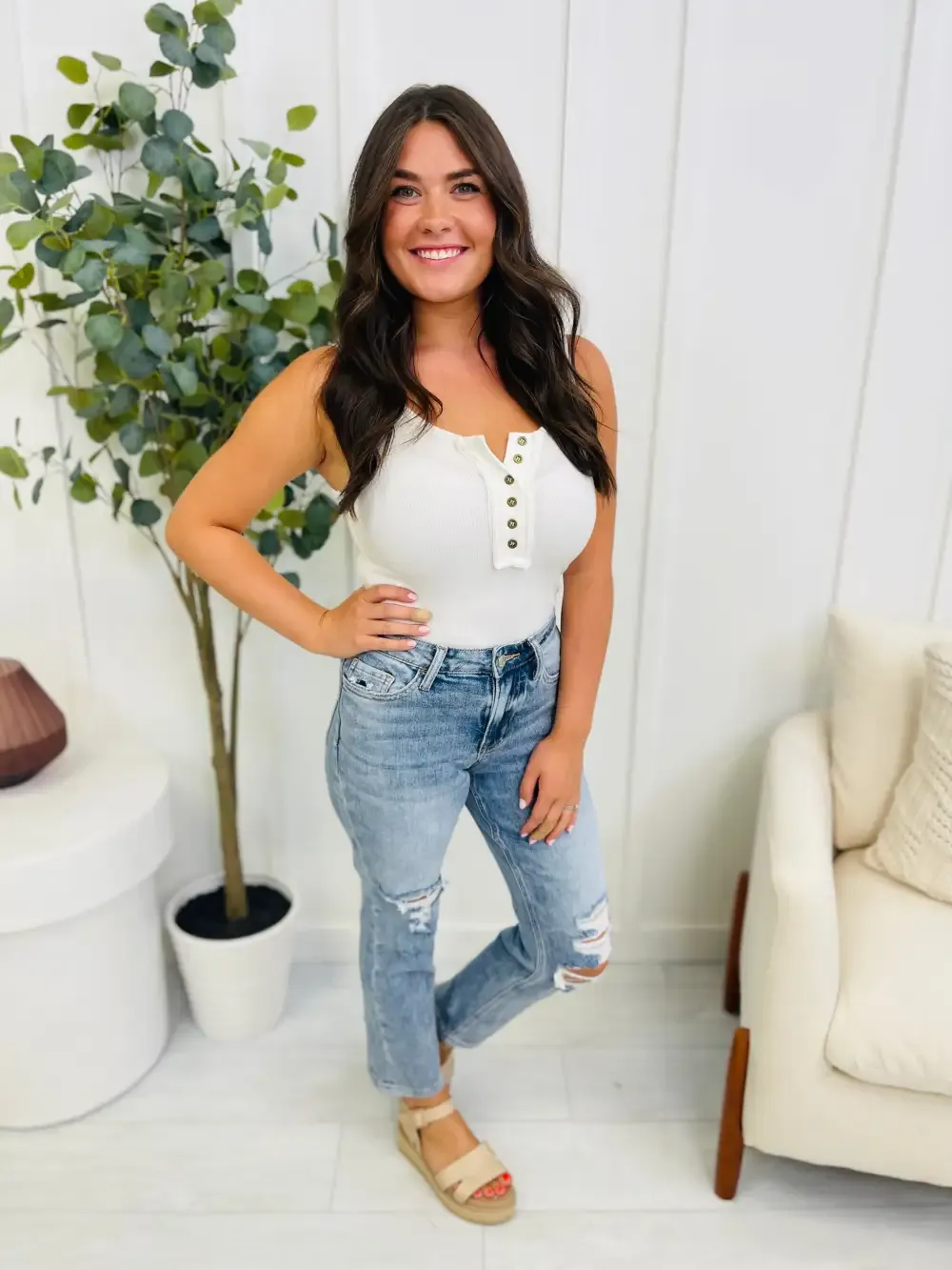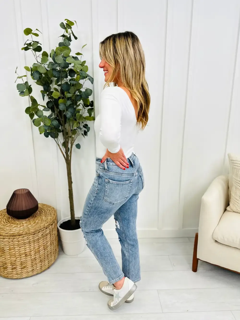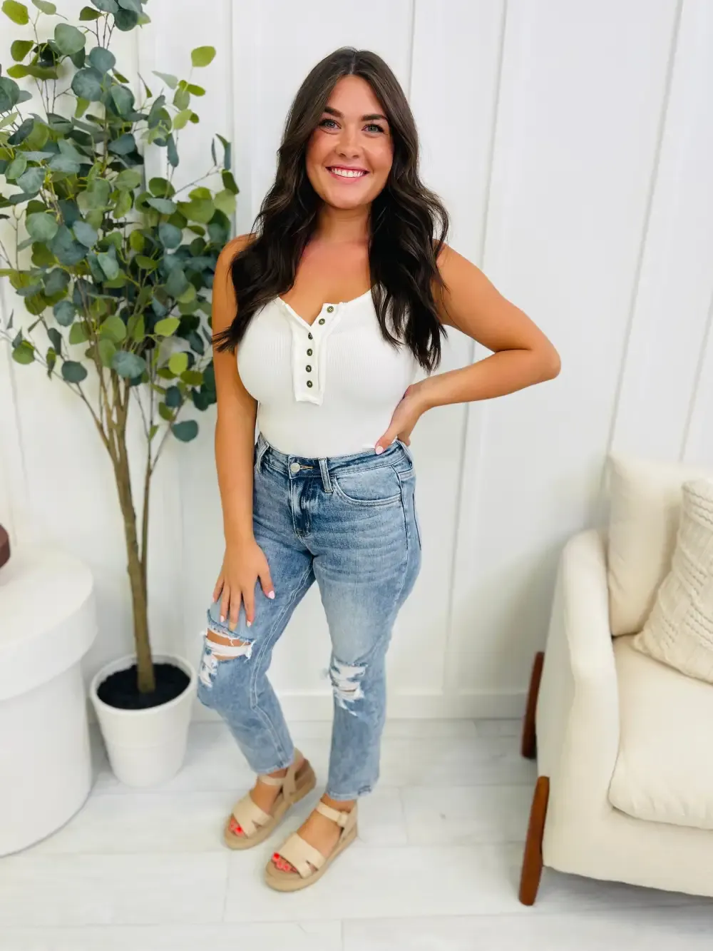 These cropped jeans are SO trendy! They feature a cropped inseam and distressing that we cannot get enough of!