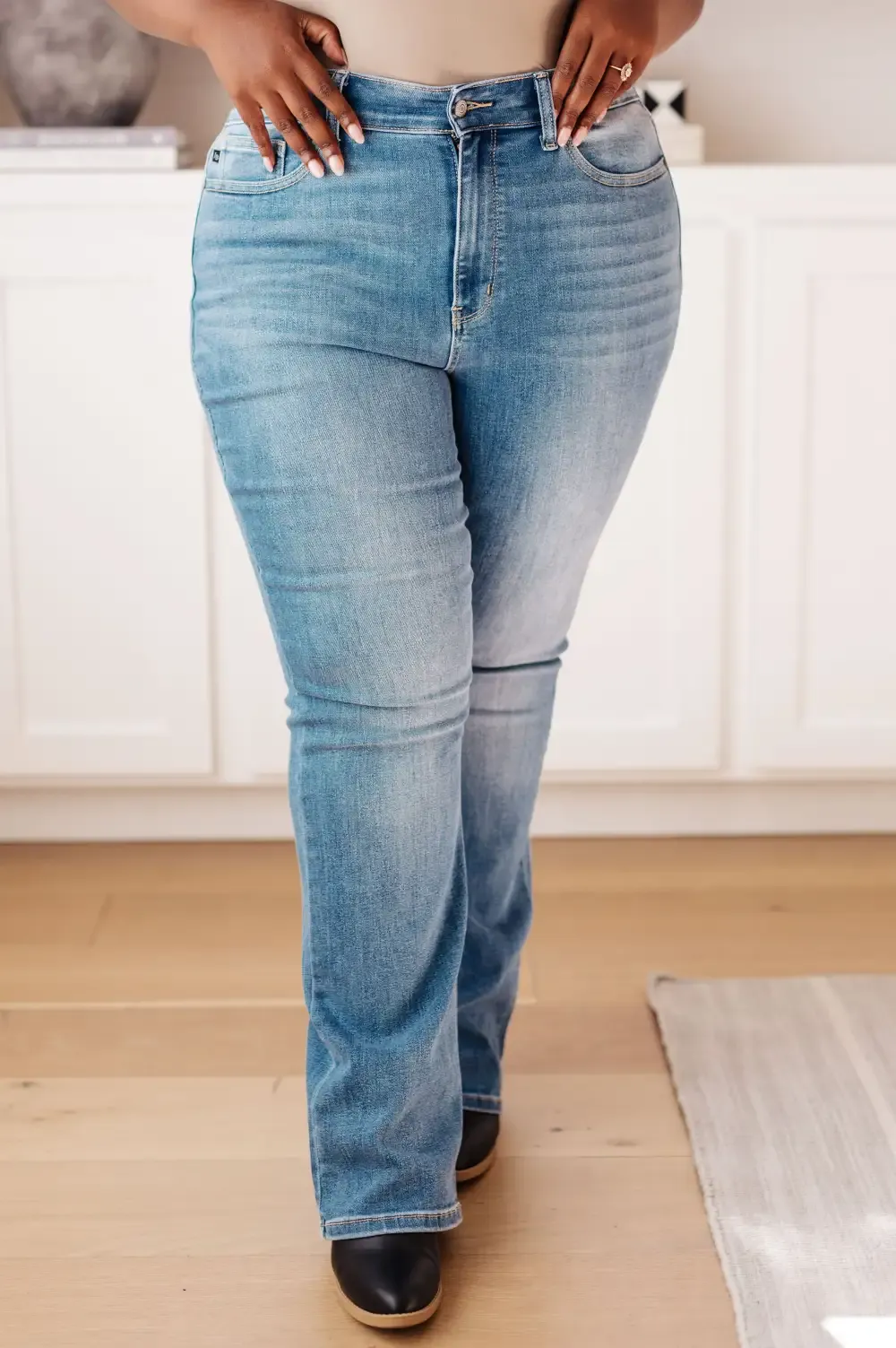 Elevate your wardrobe with our timeless Monroe High Rise Classic Bootcut Jeans from Judy Blue. Conquer your curves with a flattering high-rise fit, medium wash, and no-distress design. Take the plunge: these jeans will take your style to the next level!