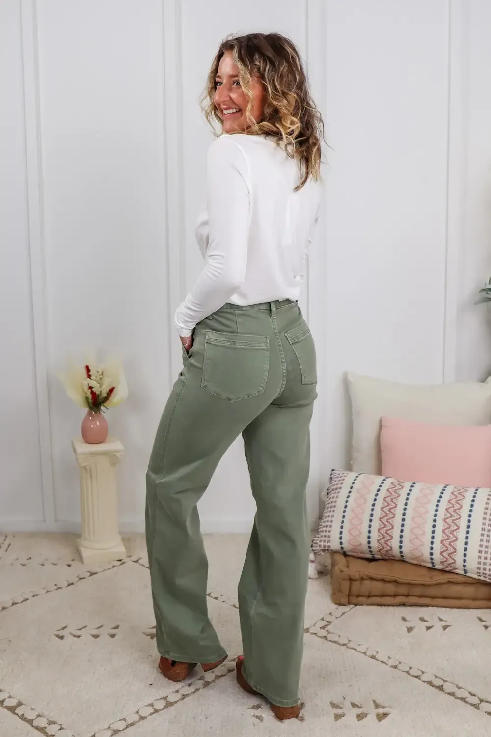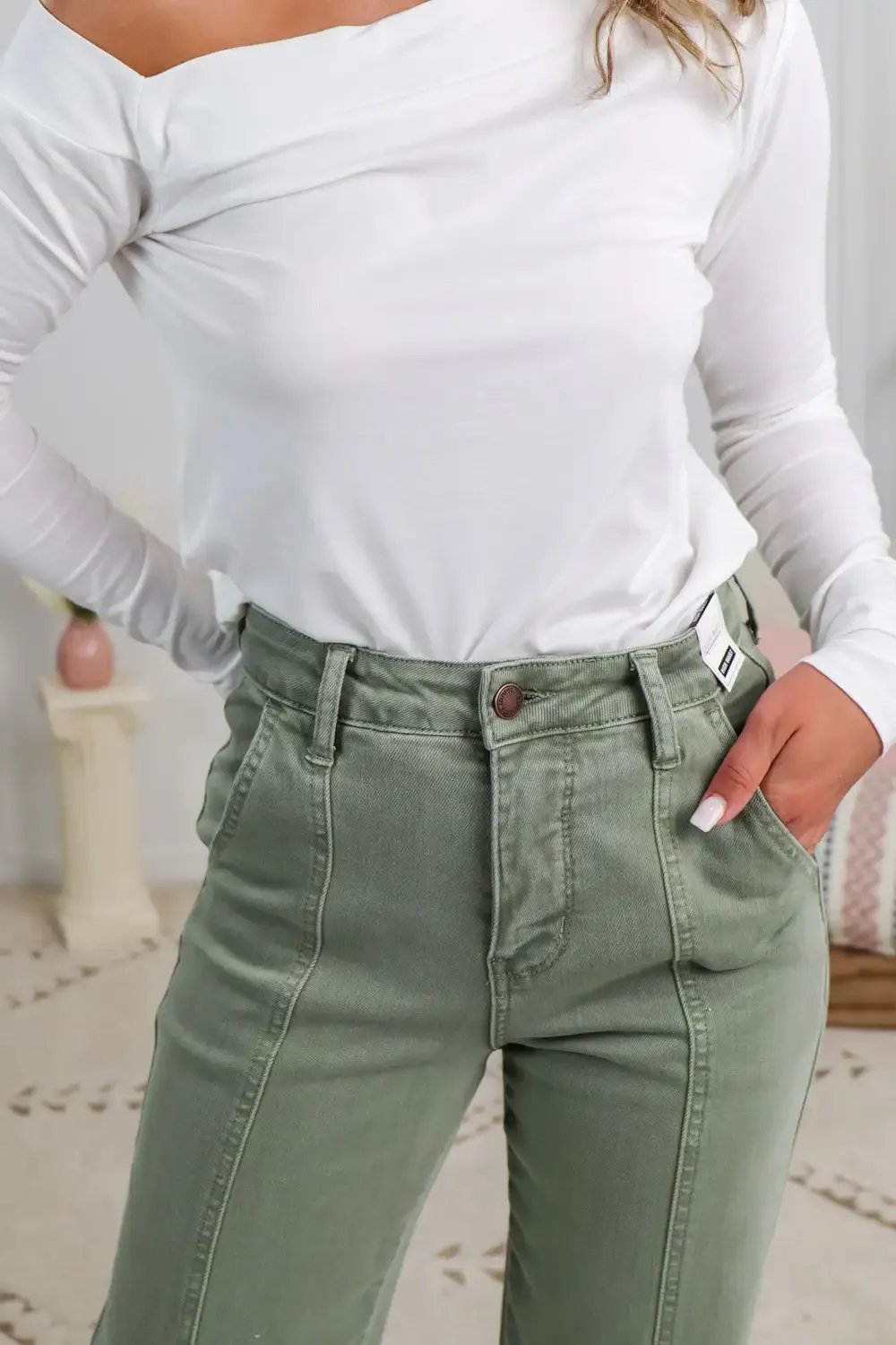 Are you tired of the same old denim routine? Get ready to redefine your style with these garment dyed sage jeans – it's like a breath of fresh air for your wardrobe.